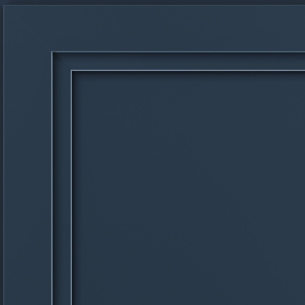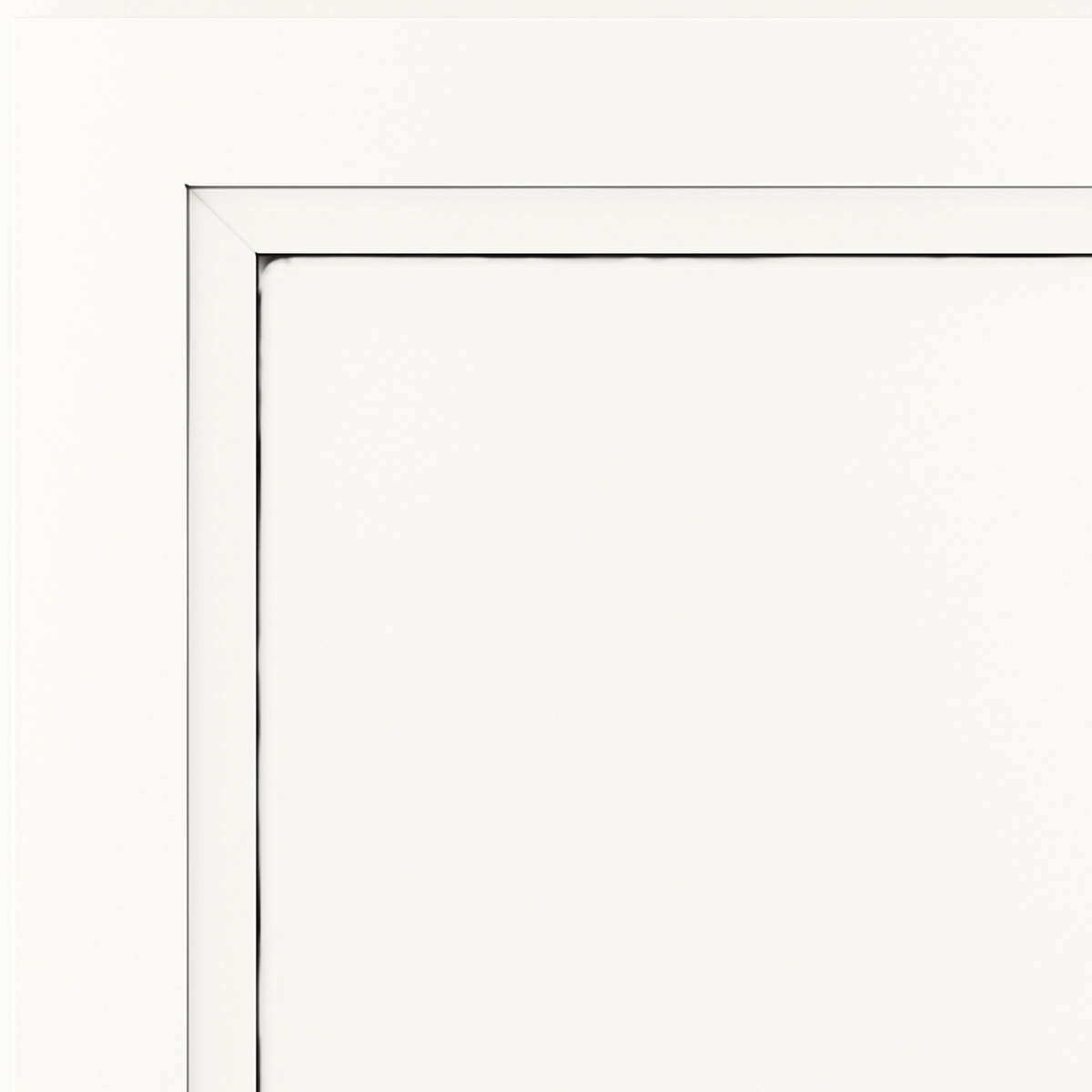Shaker-style, recessed panel door featuring mitered corners and clean cabinet details.