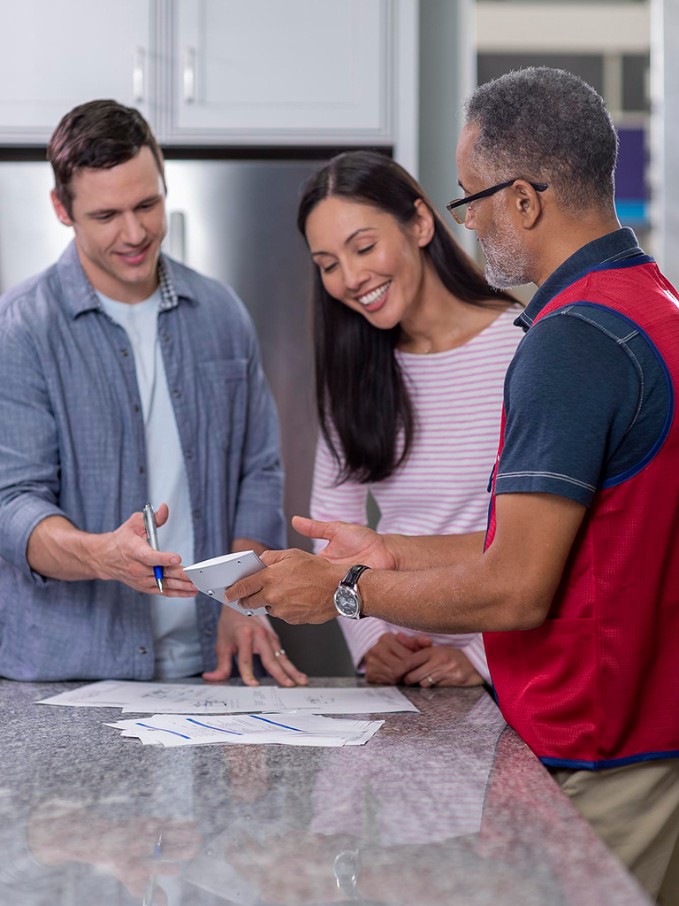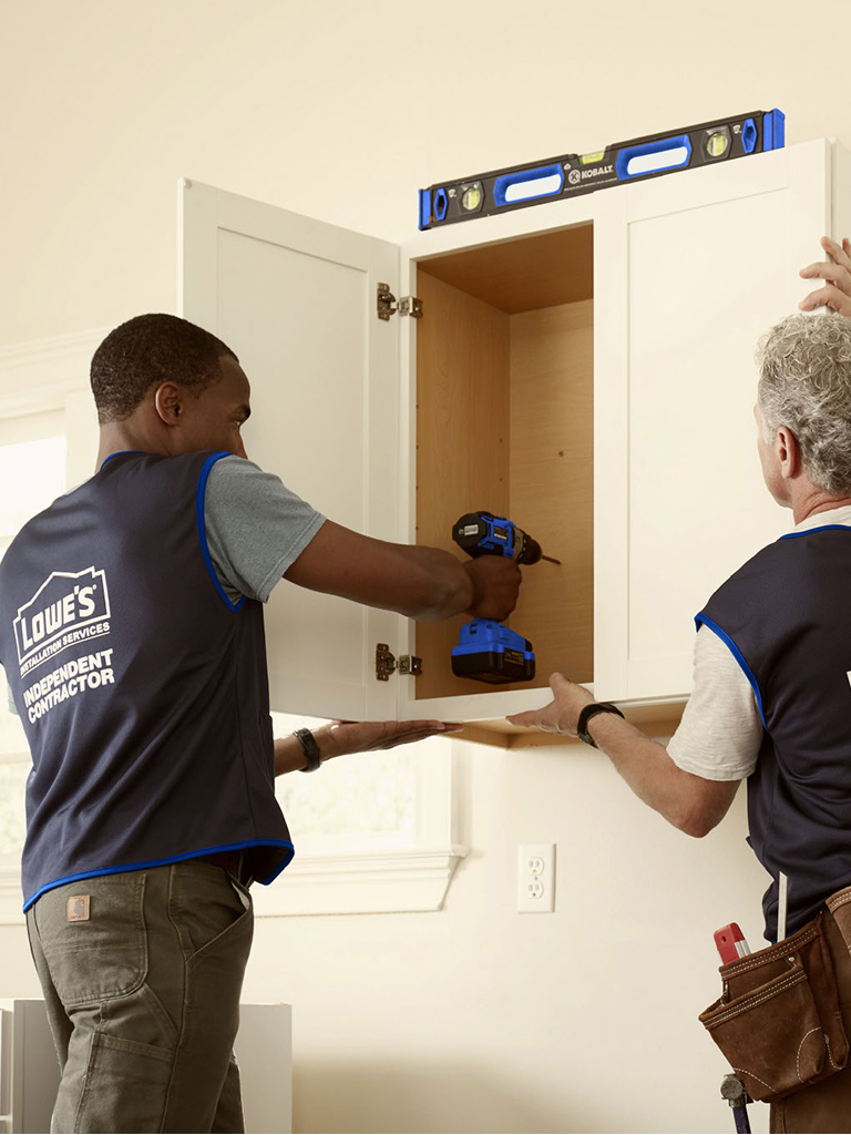 Our Lowe’s experts work with top independent installers from the local community who are licensed, insured and background-checked. When your cabinets arrive, the installation team will help set them in place and also help with the cleanup. Once cabinets are installed, take time to enjoy your new space.